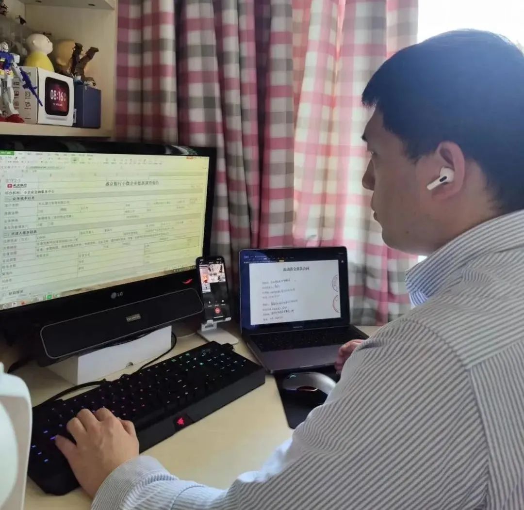客户经理梁德龙居家办公保障企业融资需求。