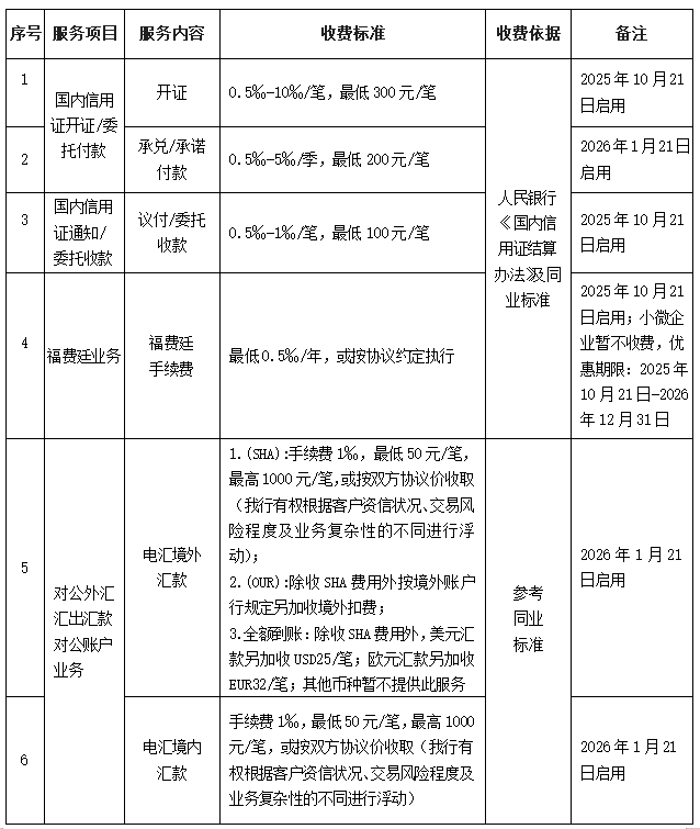 我行对部分服务收费项目进行了调整及新增。相关内容公告如下: